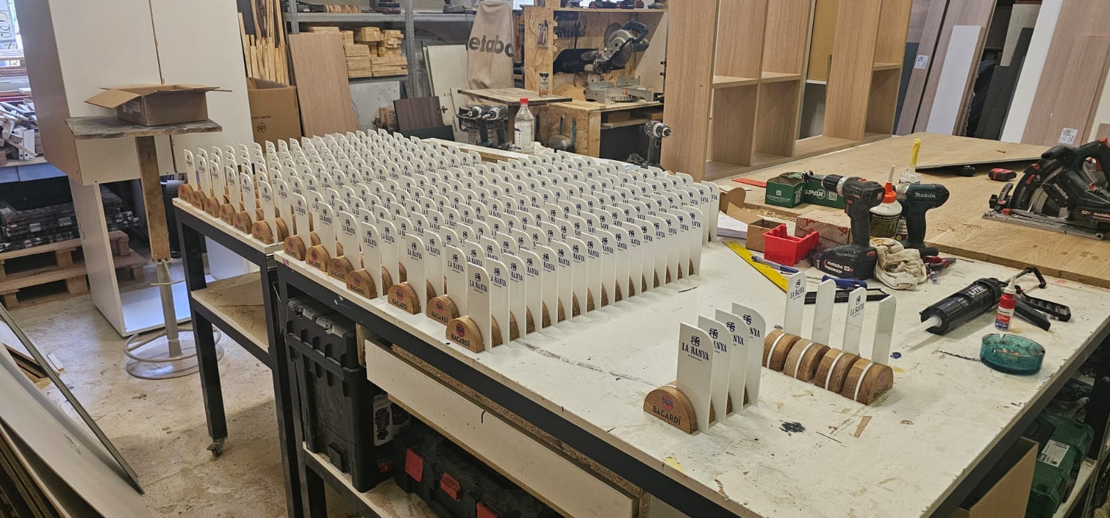 Kozmetički salon “oops!” – Kompletan projekt uređenja koji uključuje recepcijski pult, ukrasne police, samostojeću lampu, coffee table od starog panja i hrasta, stolove za pedikuru, staklenu pregradu te vanjsku i unutarnju reklamu sa svijetlećim logotipom. Salon karakterizira industrijska estetika s opečnim zidovima, zelenim zidovima od mahovine i modernim dizajnom.